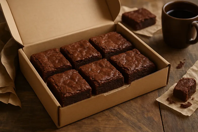 Met deze zorgvuldige verpakking en efficiënte bezorging kun je erop vertrouwen dat de brownies in perfecte staat bij jou of de ontvanger aankomen, klaar om van te genieten.